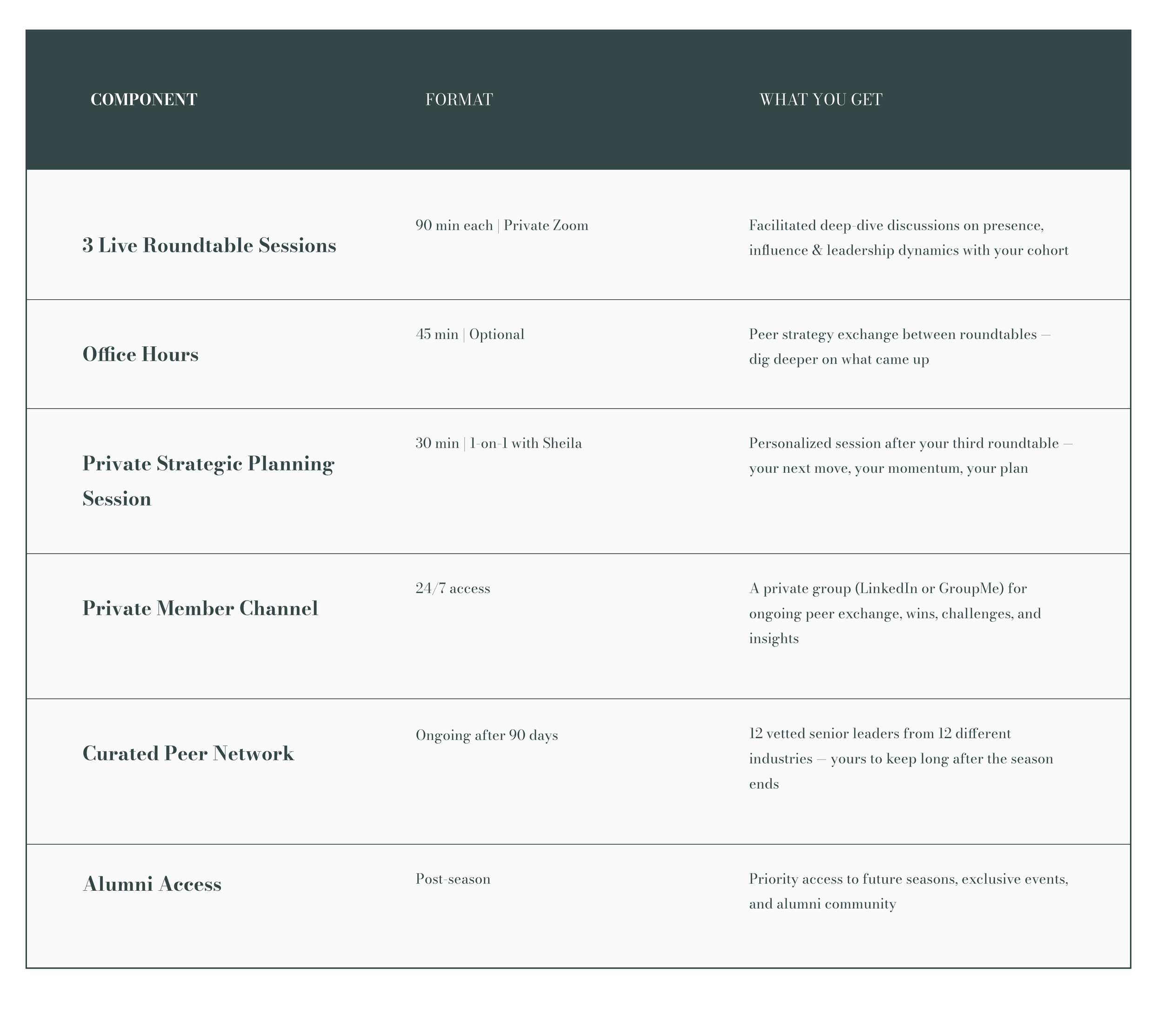 12 vetted senior leaders from 12 different industries — yours to keep long after the season ends